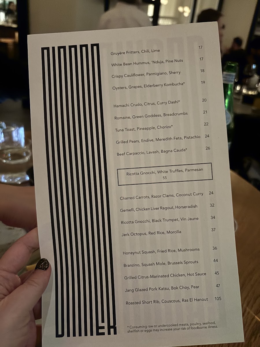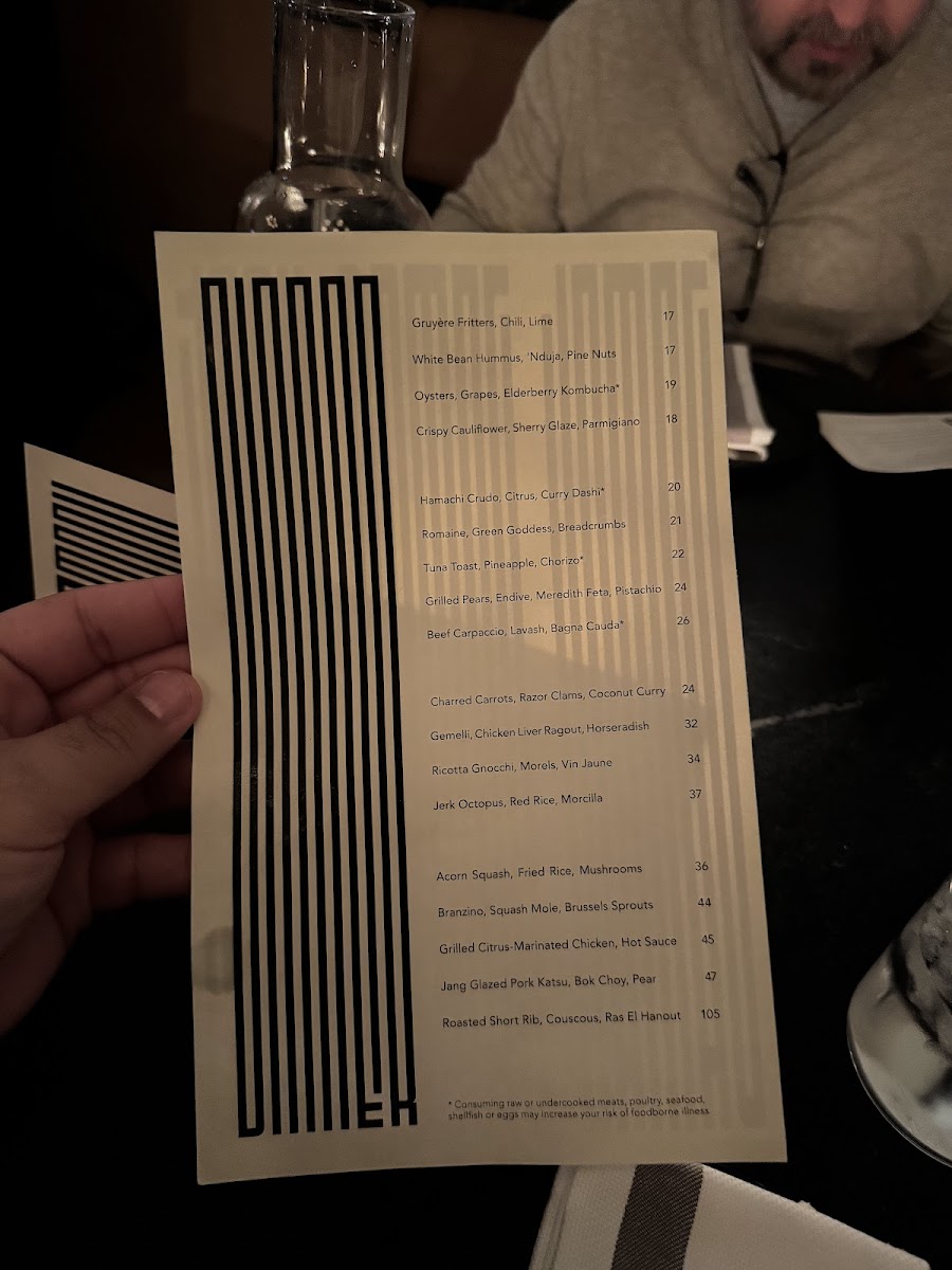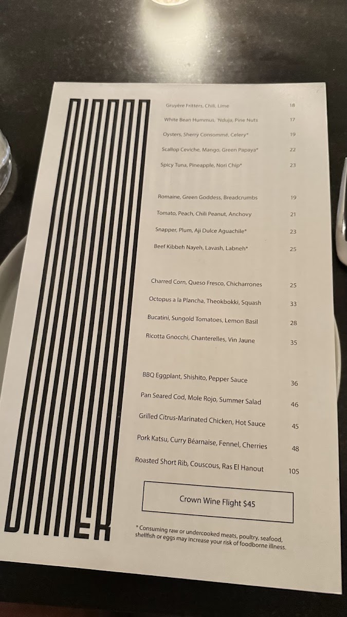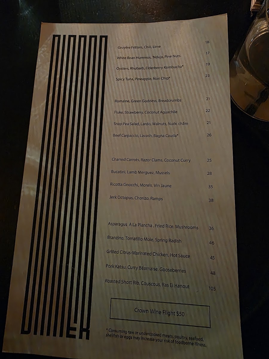 The menu showcases an array of delightful offerings that highlight the talent and creativity of the kitchen. Start with "Cauliflower, Parmigiano, Sherry," a dish that balances richness and acidity, or dive right into the "Oysters, Grapes, Jalapeño, Sake," where each bite bursts with fresh oceanic flavors layered with subtle spice. The "White Bean Hummus, Nduja, Pine Nuts" is another favorite that has diners singing praises, providing a deliciously creamy base with a flavorful kick from the nduja.