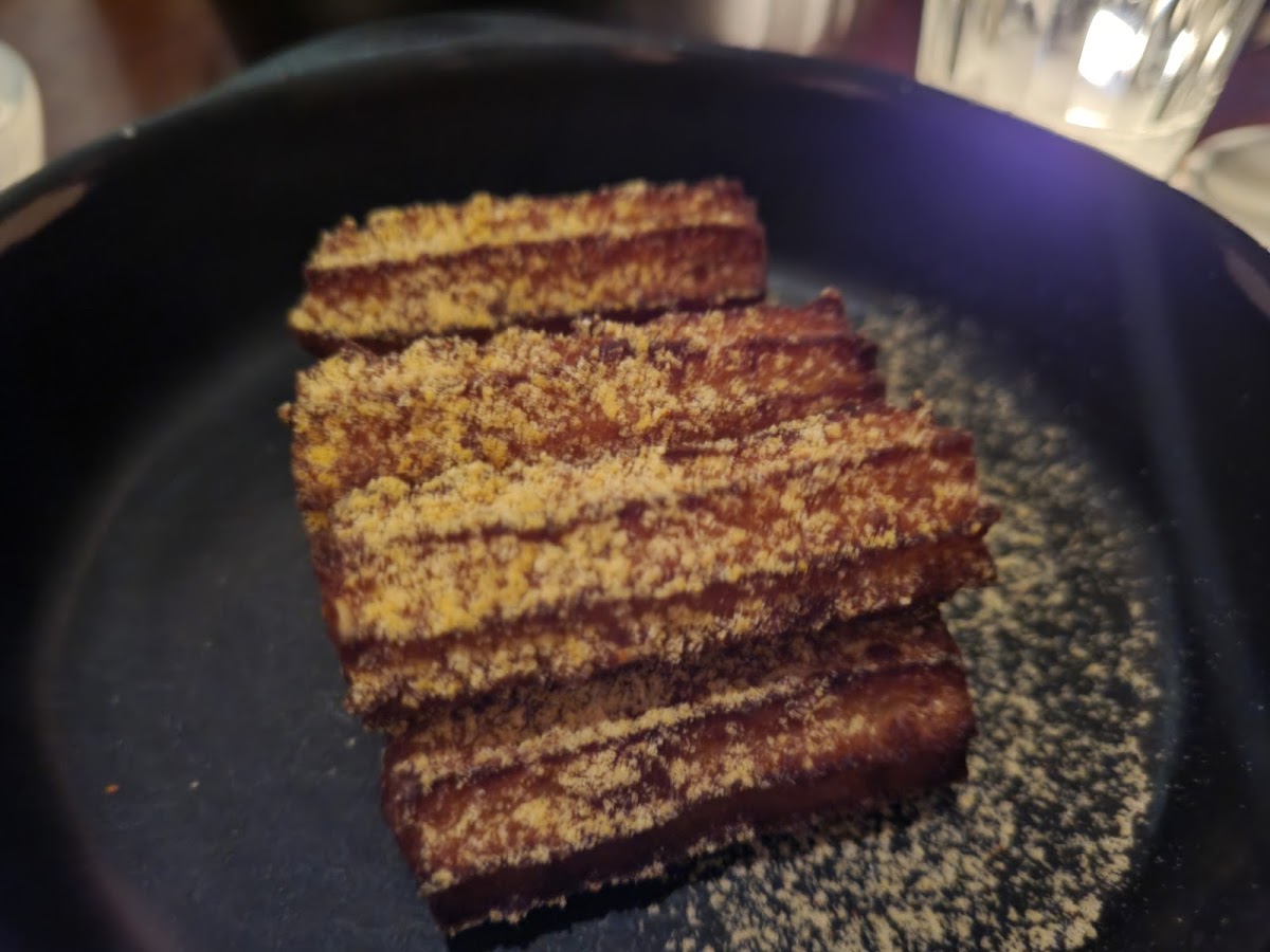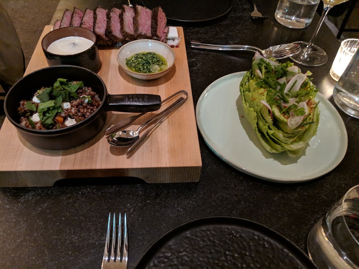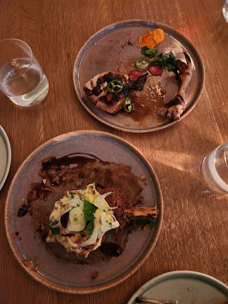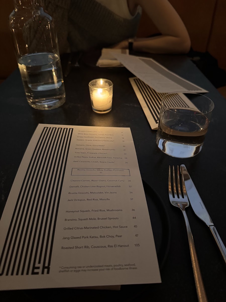 The menu showcases an array of delightful offerings that highlight the talent and creativity of the kitchen. Start with "Cauliflower, Parmigiano, Sherry," a dish that balances richness and acidity, or dive right into the "Oysters, Grapes, Jalapeño, Sake," where each bite bursts with fresh oceanic flavors layered with subtle spice. The "White Bean Hummus, Nduja, Pine Nuts" is another favorite that has diners singing praises, providing a deliciously creamy base with a flavorful kick from the nduja.