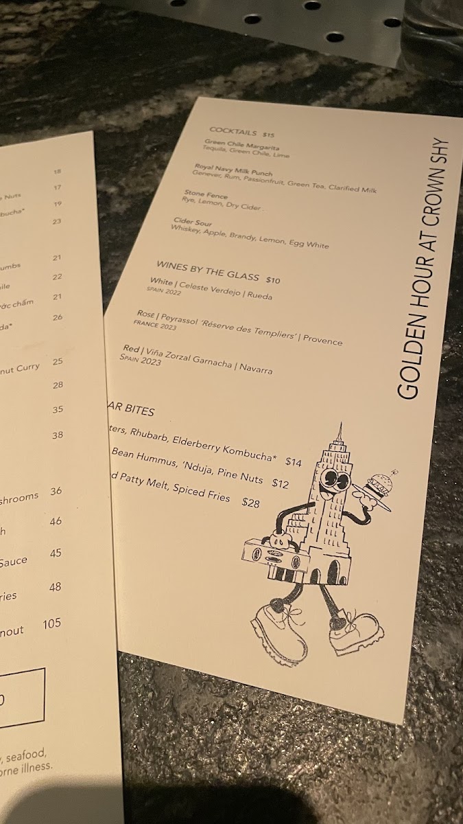 Crown Shy doesn’t just excel in its food; the service is equally exceptional. Guests consistently highlight the attentive and knowledgeable staff, who are eager to offer recommendations and accommodate dietary restrictions, ensuring a personalized experience for every guest. Whether you’re seated at a cozy table or enjoying the lively atmosphere near the open kitchen, the staff's dedication shines through, making you feel valued and well-cared for throughout your meal.